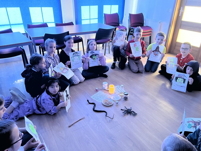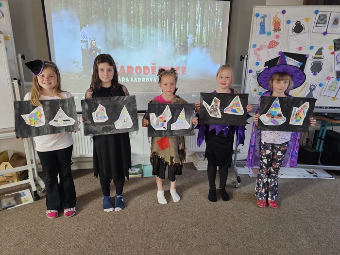 Naše třída se na chvíli proměnila v malou čarodějnickou školu! Seznámili jsme se s historií pálení čarodějnic a s tím, jak lidé dříve věřili na magii a kouzla. Společně jsme trénovali jazykolamy – kouzelnická zaklínadla, která jsme si nejen vyzkoušeli číst, ale také jsme si ve dvojicích vymýšleli vlastní. Nechybělo rýmování, čarování a přednes zpaměti – naštěstí nikdo nezmizel a nikdo se neproměnil v netopýra ani žábu. Děti vymýšlely, co přidat do kouzelného lektvaru – třeba žabí sliz, myší ocásek nebo netopýří dráp. V čarodějnické geometrii jsme narýsovali klobouk a kočku, v českém jazyce a matematice jsme procvičovali učivo pomocí čarodějných obrázků, které po vybarvení odhalily správné řešení. A na závěr? Zazpívali a zatancovali jsme si jako o filipojakubské noci na písničku Čarodějnice.