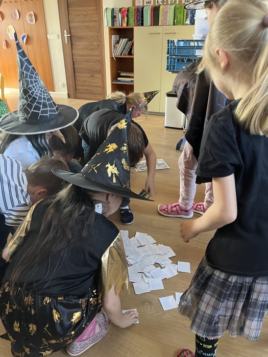 Naše třída se na jeden den proměnila v třídu kouzelnickou – konala se totiž tematická čarodějnická výuka. Každý malý čaroděj a čarodějka si nejprve vytvořili svou vlastní čarodějnici. Děti ji nejen výtvarně ztvárnily, ale také jí daly jméno a popsaly, co má ráda, čím se zabývá a jaké kouzlo ovládá nejlépe. Když byly čarodějnice hotové, nastal čas, aby se slétly v čarodějnickém kruhu, kde společně vyčarovaly lektvar přátelství. Děti do kotlíku přihazovaly přísady jako žabí sliz, pavoučí oči nebo hadí jed. Ani učení jsme ale nezanedbali – po třídě byly rozmístěné obrázky čarodějnic s příklady, které děti ve skupinkách musely najít a vypočítat. Dále jsme si například zahráli na Ježibabu, které děti kradly perníčky, a spoustu dalších čarodějnických her.