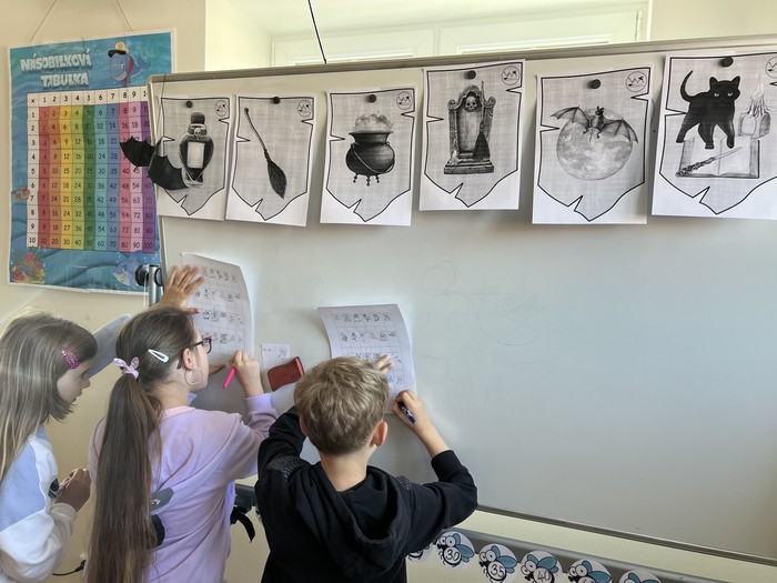 Dne 30. 4. se naše vyučování proměnilo v čarodějnickou školu plnou zábavných úkolů a her. V českém jazyce jsme si namíchali vlastní čarodějnický lektvar složený z ingrediencí napsaných na kartičkách, které byly rozmístěny po celé třídě. V matematice jsme hledali ztracené lektvary pro čarodějnice - správným přiřazováním vypočítaných příkladů. Další hodinu jsme měli čtení s porozuměním s tajenkou. Podle zadaných krátkých příběhů děti hledaly správné obrázky a vyluštily tak čarodějnickou tajenku. No a poslední hodinu si každý vyrobil čarodějnici podle své fantazie, rozvěsili jsme je a hlídají nám naši třídu. Byl to den plný čar a kouzel.
