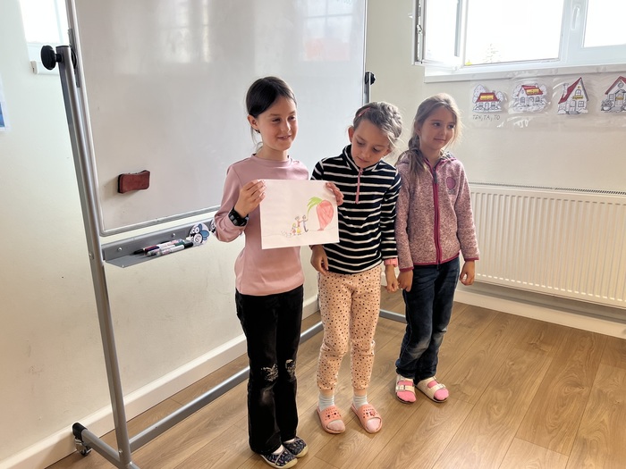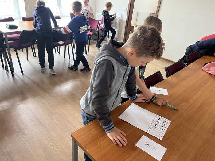 Den jsme zahájili v ranním kruhu, kde si každý vylosoval obrázek dítěte z jiného koutu světa – nechyběl Ir, Mexičan, Havajanka nebo třeba Indka. Poté jsme se navzájem zdravili v jazycích těchto zemí. Děti si užily, jak zábavné může být říct „ahoj“ třeba německy nebo španělsky. Hlavním bodem dne byla pohádková pohybová „šifrovačka“. Ve skupinkách děti hledaly písmenkové šifry rozmístěné po chodbě, šatně i učebně. Výslednou pohádku měly děti za úkol nakreslit tak, aby ostatní skupiny mohly uhodnout, o jaký příběh se jedná.