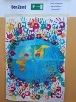 Jelikož na pondělí 22.4. připadá Den Země, připravili si žáci 9. třídy v přírodopise aktivity pro své mladší spolužáky. Děti z prvního stupně mohly sešlapávat PET lahve, napsat Zemi vzkaz, že se nemusí bát, že se o ni postaráme, třídit odpady do patřičných kontejnerů či se zamyslet, kam odneseme léky, které jsou po době použití. Na závěr si děti na důkaz, že Zemi máme ve svých rukou, mohly svou ruku obtisknout okolo naší papírové planety. A přidali se i učitelé. Pro prvňáčky bylo připraveno plnění úkolů ve školní zahradě, tzv. plotovka s tématikou, jež se naší Země týká.