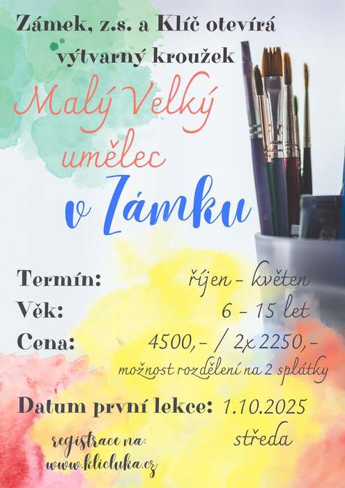 Druhým kurzem je výtvarný kroužek pro děti ve věku od 6 do 15 let. Tento kroužek je zaměřený na podporu tvořivosti, rozvoj fantazie a vlastní sebevyjádření prostřednictvím různých výtvarných technik. Děti zde budou mít prostor tvořit v inspirativním prostředí.