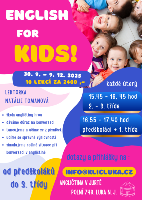 Prvním kurzem je Angličtina pro děti ve věku od předškolního věku do 3. třídy. Výuka probíhá hravou a zážitkovou formou a volně navazuje na to, co se děti učí ve škole. Cílem je, aby si děti angličtinu oblíbily, získaly sebevědomí v jejím používání a zároveň si prohlubovaly slovní zásobu