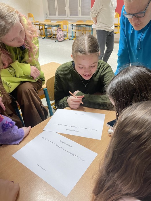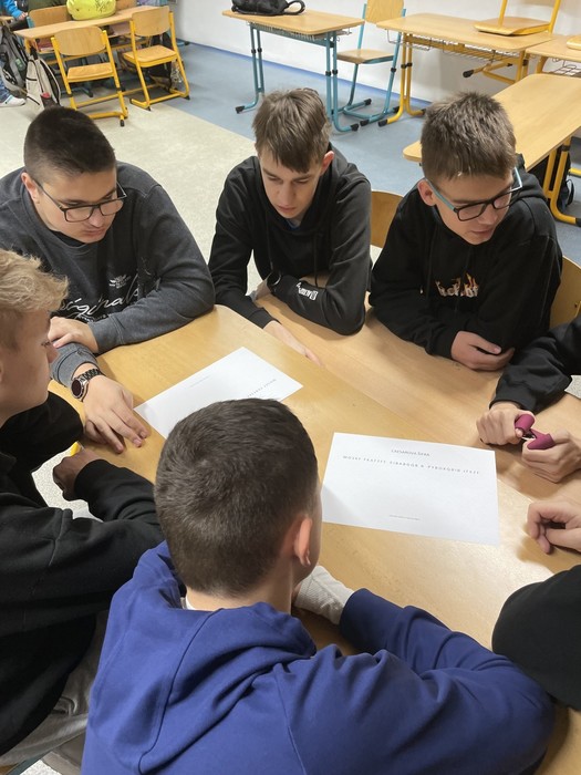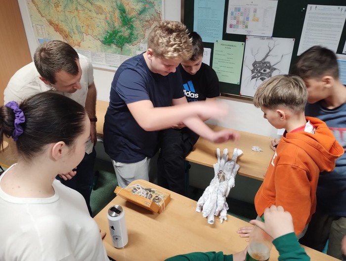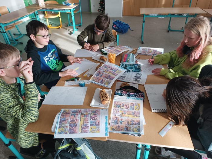 V druhé části dne si každý učitel nachystal tématickou dílnu, kam se přihlásili zájemci napříč druhým stupněm. Některé dílny byly výtvarné, jiné sportovní, politicky zaměřené, přemýšleli jsme o odlišných školních systémech, programovali hru, bádali i relaxovali. Učitelé i žáci měli možnost pracovat na něčem v delším časovém bloku a v jiném složení než obvykle.