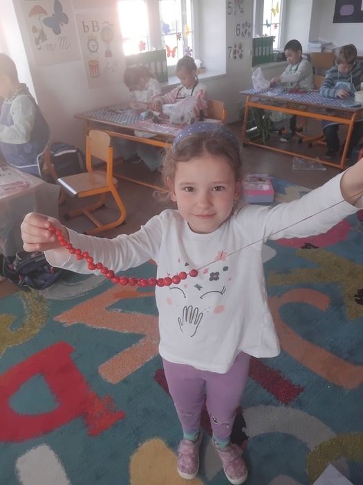 Dnešní den byl v 1.C ve znamení tvoření z přírodních materiálů. Navlékali jsme je pomocí jehly jako korálky a udělali si mnoho hezkých ozdob. Mnozí z nás pracovali s jehlou poprvé, ale krásně jsme to zvládli. Posuďte sami.