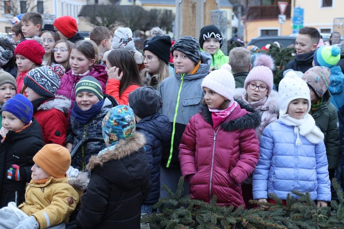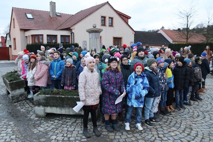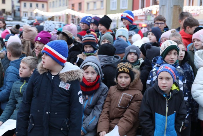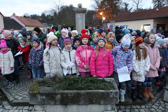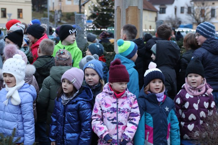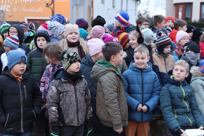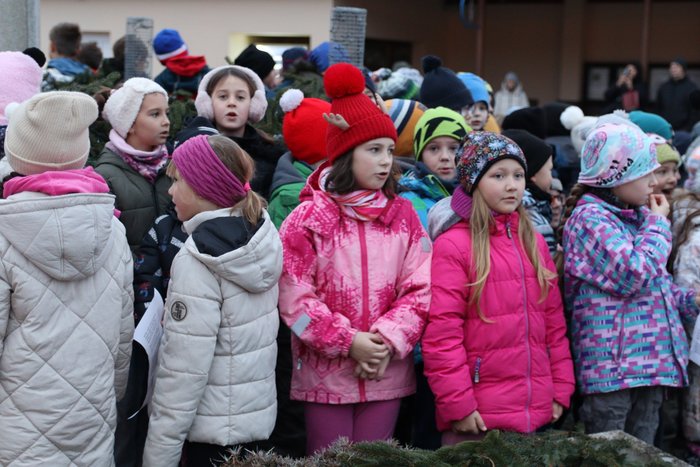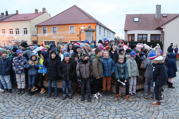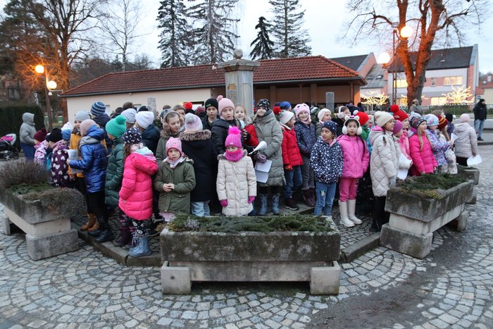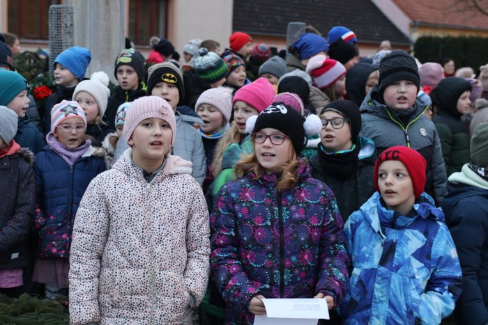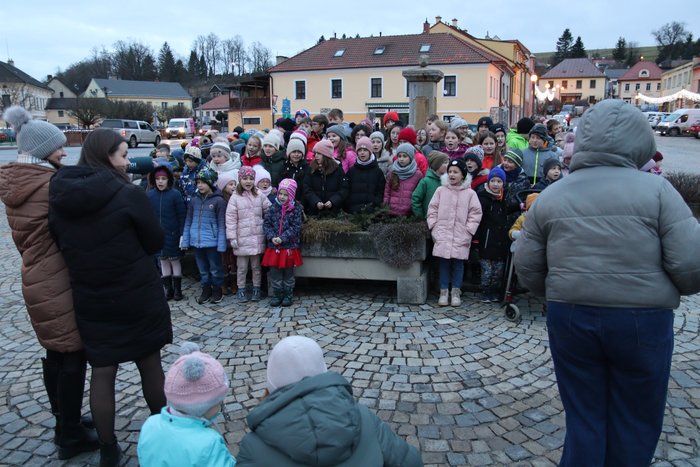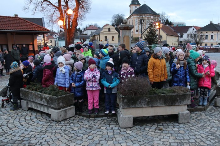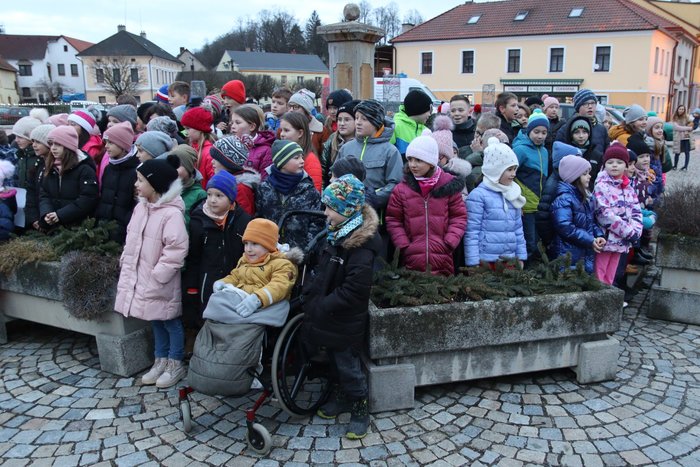 Celý první stupeň se v pátek ráno sešel u kašny na náměstí, aby si zazpíval koledy. Děti obestoupily kašnu kolem dokola a zpívaly na celé městečko. Sníh sice nepřivolaly, ale vánoční atmosféru určitě.