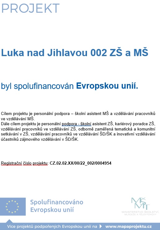 Úvod > Úřední deska > Projekty > Luka nad Jihlavou 002 ZŠ a MŠ