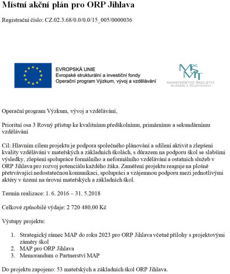 Úvod > Úřední deska > Projekty > Místní akční plán pro ORP Jihlava